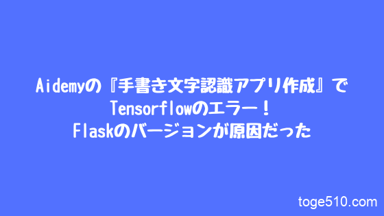 今回は、手書き文字認識アプリにおいて、Tensorflowのエラーが発生して困っていたときに、Flaskのバージョンを下げたら解決したという話をします。