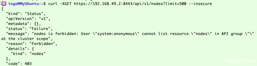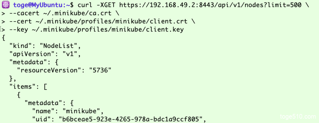 curl -XGET https://192.168.49.2:8443/api/v1/nodes?limit=500